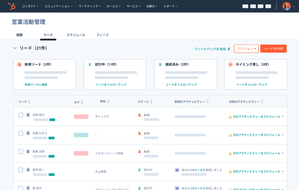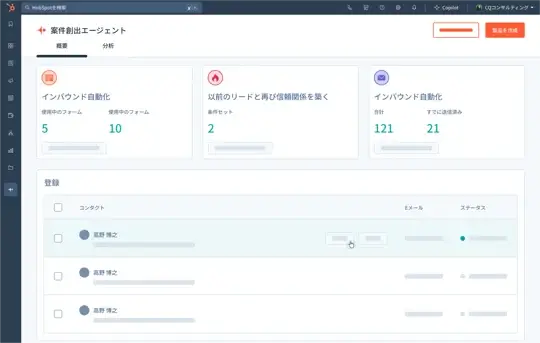 インターネットの普及に伴い、最適なタイミングで顧客・見込み客と商談を行うことが困難に。顧客情報のサイロ化により顧客への重複フォローなども発生。営業DXへ着手自社開発で顧客情報を統合。顧客へのアクションを管理するツールとしてHubSpotを導入。行動履歴をもとにカスタマイズしたメールを営業部門内で作成し、送付する取り組みなどから社内へ展開約営業担当者のフォローアップが積極的になり、メルマガ起点の商談化率は大きく改善。